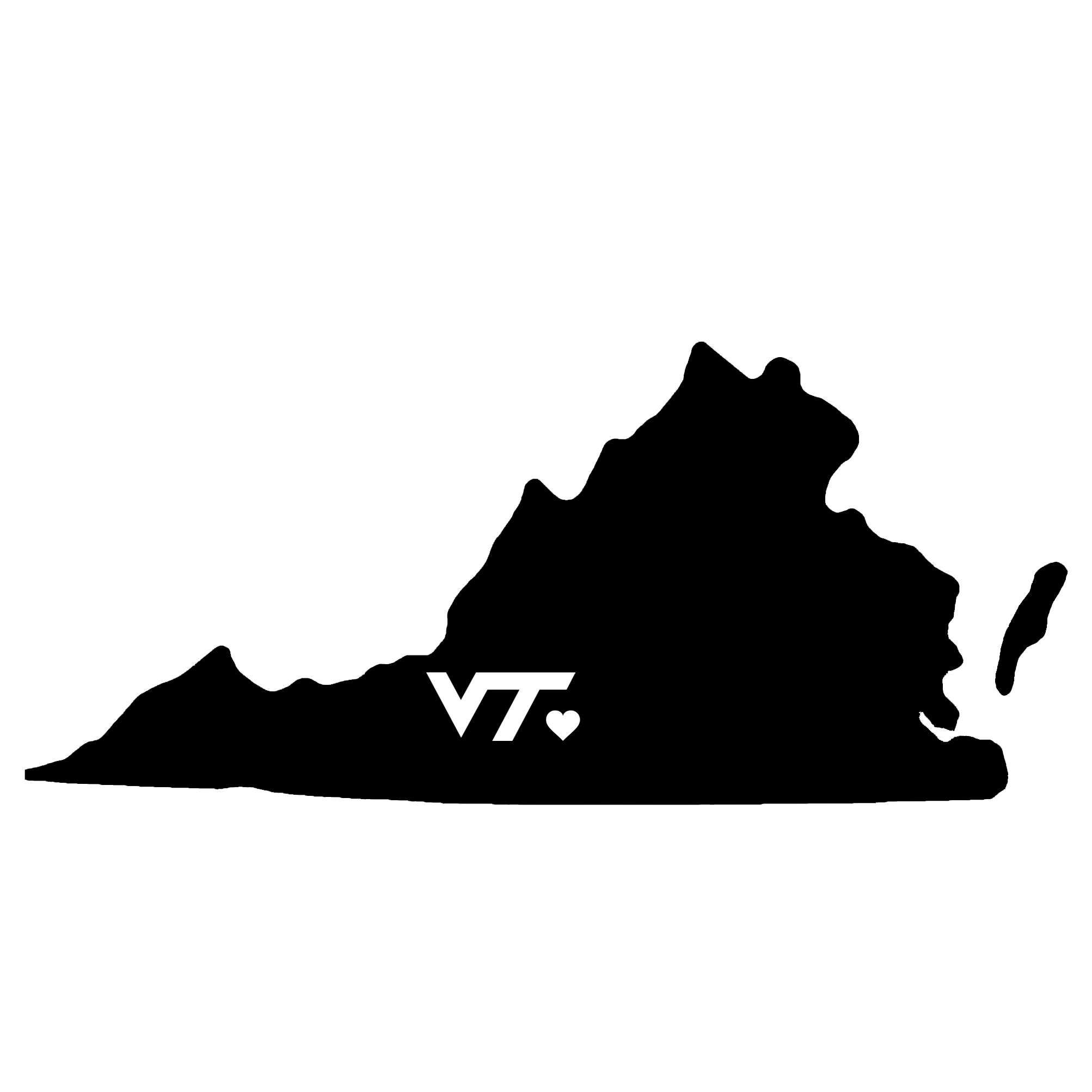 VT Heart Virginia Tech State Outline die cut vinyl decal