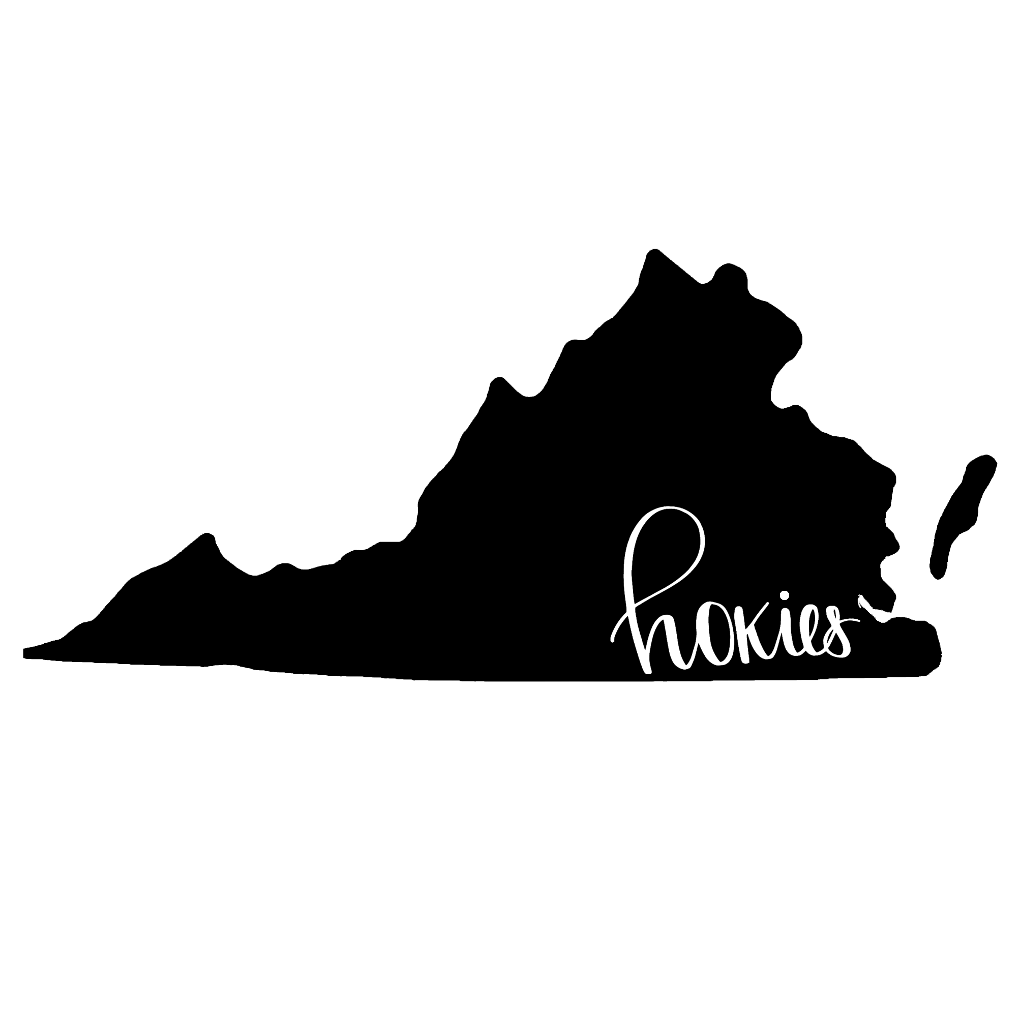 Cursive Hokies Virginia Tech State Outline die cut vinyl decal