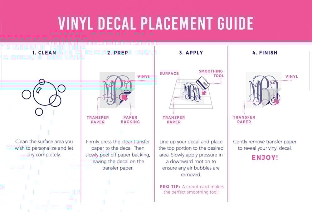 • Decals can be applied to any Smooth, Clean surface